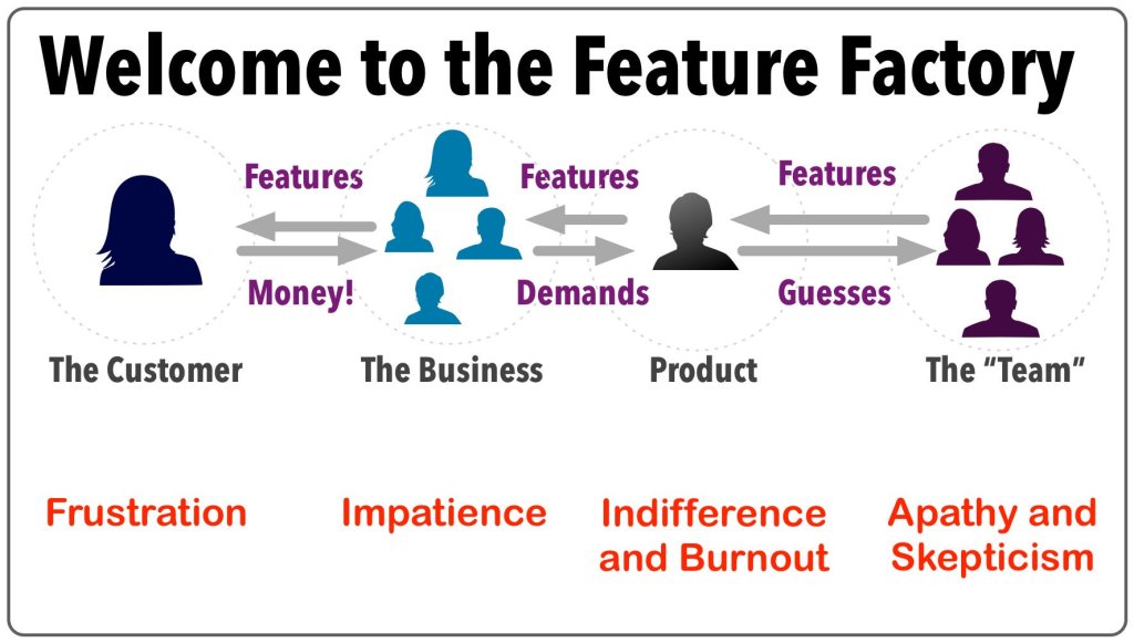 - Feature Factory: Our product development cycle can be just a Feature Factory, producing a lot of customer frustration, business impatience, team burnout or apathy. It’s a term coined by John Cutler, and is very related to impact metrics. Check out John’s tweet which first coined the term to get a sense of the pain many of us have experienced: